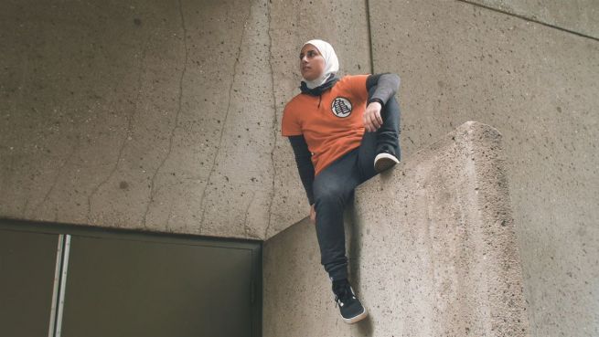 Das Kopftuch hält sie nicht davon ab, Parkour zu betreiben