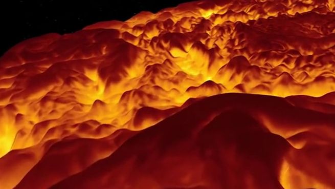 Es sieht aus wie ein Flammeninferno direkt aus der Hölle, doch tatsächlich herrschen Minusgrade: der Nordpol des Planeten Jupiter ist aus der Nähe betrachtet ziemlich unheimlich. Die NASA hat eine 3D-Animation der stürmischen Landschaft veröffentlicht.