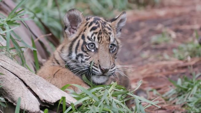 Zwei flauschige Tigerbabys aus dem San Diego Zoo, sind in ein neues Gehege gezogen. Gemeinsam kuscheln und raufen sich die beiden, während sie im Grün die neue Gegend erkunden.