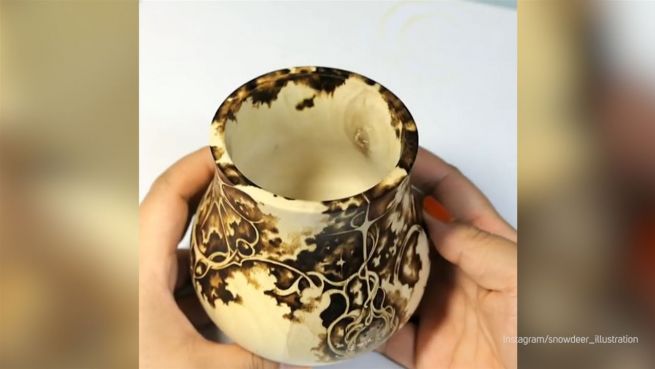 Kim Sulrok ist Künstlerin aus Korea und hat ihre Leidenschaft in der Pyrographie - also Brandmalerei - gefunden. Sie bemalt Holz und Leder und teilt ihre Werke auf Instagram.