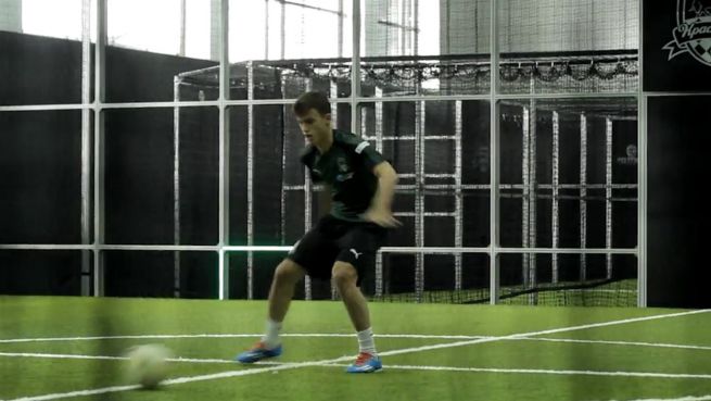 Im russischen Krasnodar werden die Fußballprofis von morgen ausgebildet. In einem speziellen Trainingsraum wird Technik und Schnelligkeit geübt. Einen zweiten Mitspieler braucht man dafür nicht.