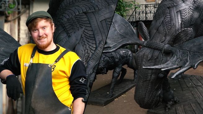 In Alexeys Heimatstadt Perm werden ausrangierte Reifen einfach an beliebigen Orten entsorgt. Um etwas Gutes für die Umwelt zu tun, kreiert er aus den Abfällen nun Skulpturen.